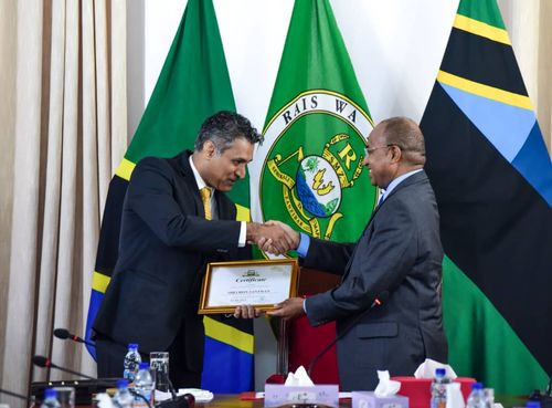Zubin Karkaria receiving the Certificate for being appointed as Brand Ambassador for Zanzibar in the sphere of Tourism